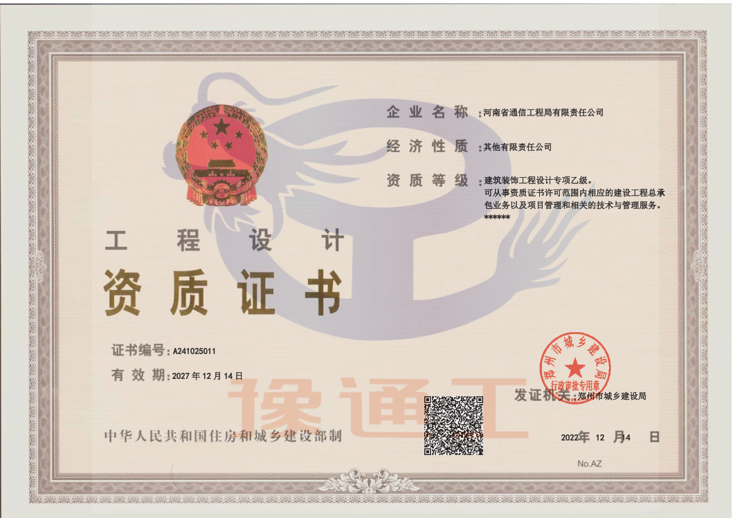 電子與智能化、建筑裝修裝飾、消防設(shè)施工程專業(yè)承包壹級(jí);鋼結(jié)構(gòu)工程專業(yè)承包貳級(jí);建筑工程、電力工程、機(jī)電工程、城市及道路照明工程專業(yè)施工總承包叁級(jí);施工勞務(wù)不分等級(jí)。